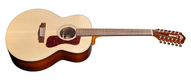 Dvanáctistrunná elektroakustická kytara, série: Guild Acoustic Design, tvar: jumbo, přední deska: masivní smrk, zadní deska a luby: masivní palisandr, krk: mahagon, hmatník: palisandr, snímací systém: Fishman Sonitone, kufr součástí balení, barva: Natural