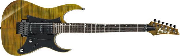Elektrická kytara, série: RG Premium, tělo: lípa, top: žíhaný javor, krk: wenge / bubinga, hmatník: wenge, snímače: 2x DiMarzio IBZ + 1x DiMarzio IBZ, barva: Tiger Eye