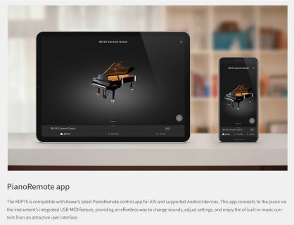 Digitální piano - 88 kláves (kladívková klaviatura, plně vyvážená), 200 zvuků, 100 rytmů, 60 demo skladeb, polyfonie: 128 hlasů/256 MBit, funkce Record/Play, USB, MIDI, Bluetooth, sluchátkový...