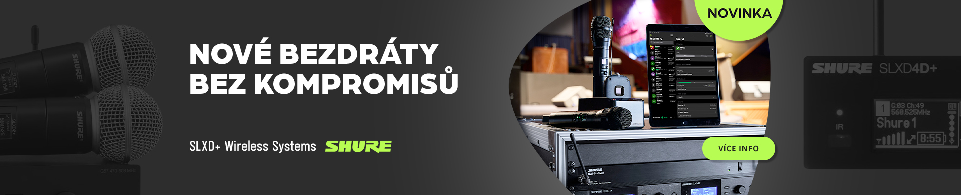 Dynamický vokální mikrofon, charakteristika: kardioidní, frekvenční rozsah: 50 Hz - 15 kHz, citlivost: -54,5 dBV/Pa – 1,85 mV/Pa, integrovaný vypínač