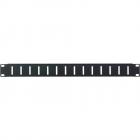 Ocelová větrací lišta pro rack, výška 1U. Černý hrubý lak. Šířka 2 mm.