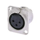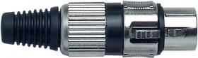 Mini XLR kabelový konektor - samice, 3-pinový, s pojistkou, kovové pouzdro, barva černo-stříbrná, kontakty nikl, pájecí, pro kabely o průměru 3 - 4,5 mm