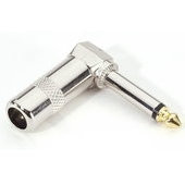 Pravoúhlý konektor Jack 6,3 mm mono s pochromovaným tělem, pro montáž na kabel