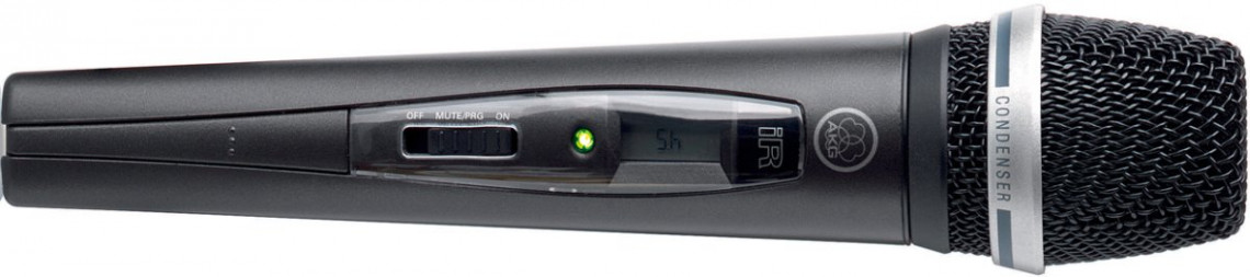Bezdrátový zpěvový mikrofon s patentovanou vložkou AKG D5, frekvenční rozsah 70 Hz až 20kHz, superkarioidní charakteristika, malé rozměry a nízká hmotnost, provoz na AA baterie případně volitelný...