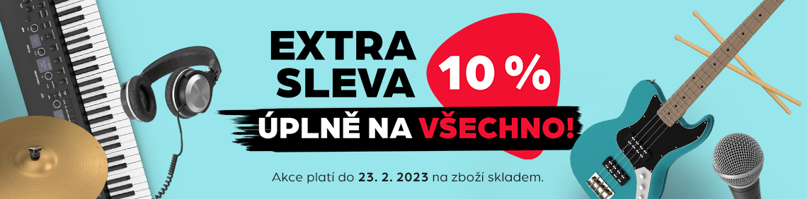 v Music City teď vyhlašujeme EXTRA SLEVU 10 % úplně na všechno, co máme aktuálně skladem! Dodatečnou slevu můžete uplatnit i na zboží v akci nebo výprodeji.