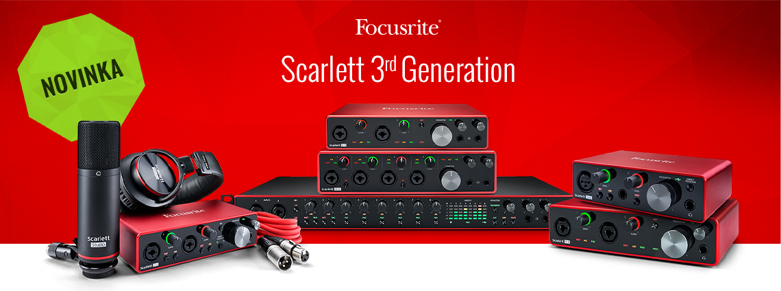 TŘETÍ GENERACE SCARLETT JE NA SVĚTĚ Britská společnost Focusrite vstupuje 2. července 2019 na trh s třetí řadou audio rozhraní Scarlett. Pětice nových přírůstků rodiny Focusrite má za cíl oslovit širší spektrum uživatelů od jednotlivců v domácích podmínkách po provozovatele profesionálních nahrávacích studií. |