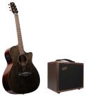 Set ektroakusticé kytary - top: smrk (masiv), zadní deska + luby: mahagon, krk: mahagon, hmatník: vavřín, elektronika: Fishman Presys II, barva: Black, kytarové kombo Henry`s Walker ACA-25W,...