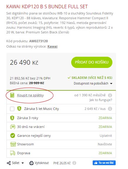 Splátky lze sjednat jak online, tak na prodejnách Music City.