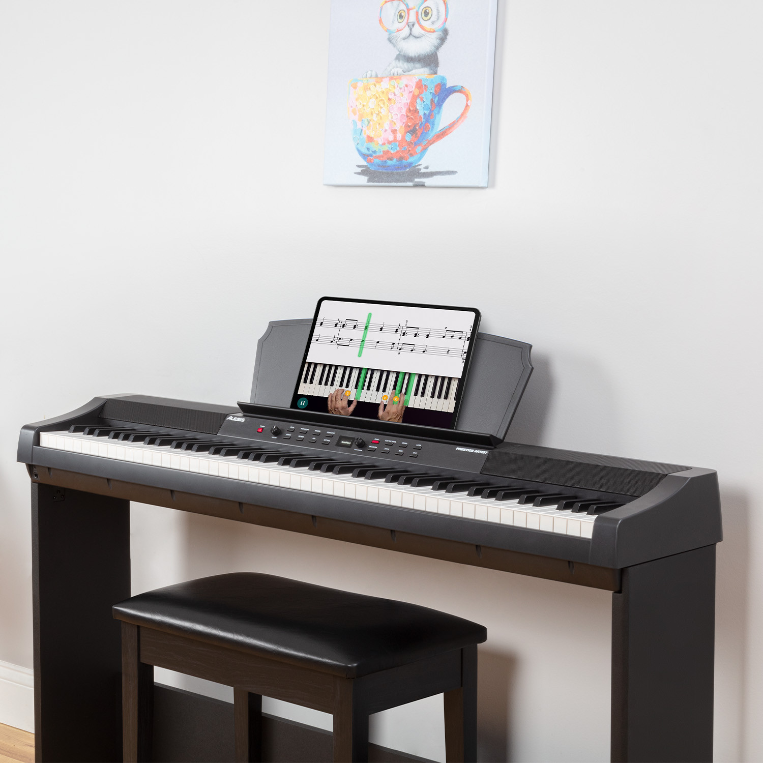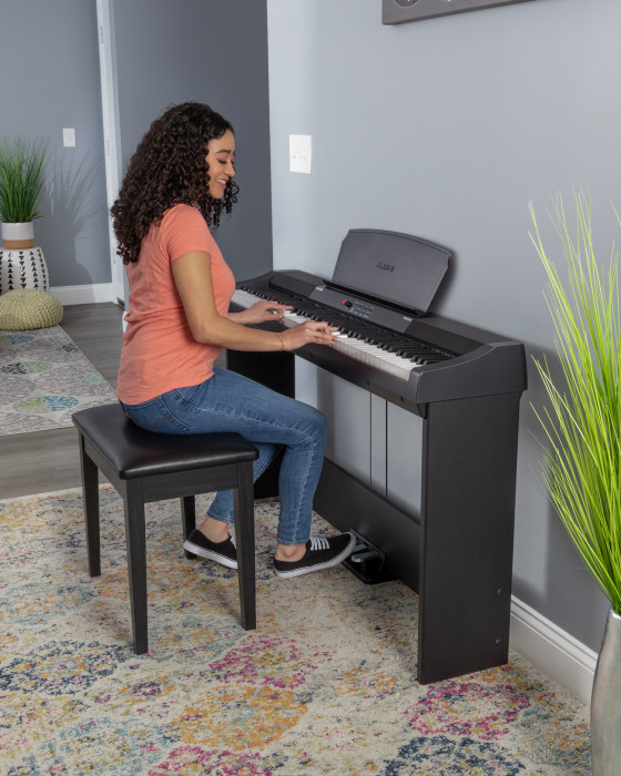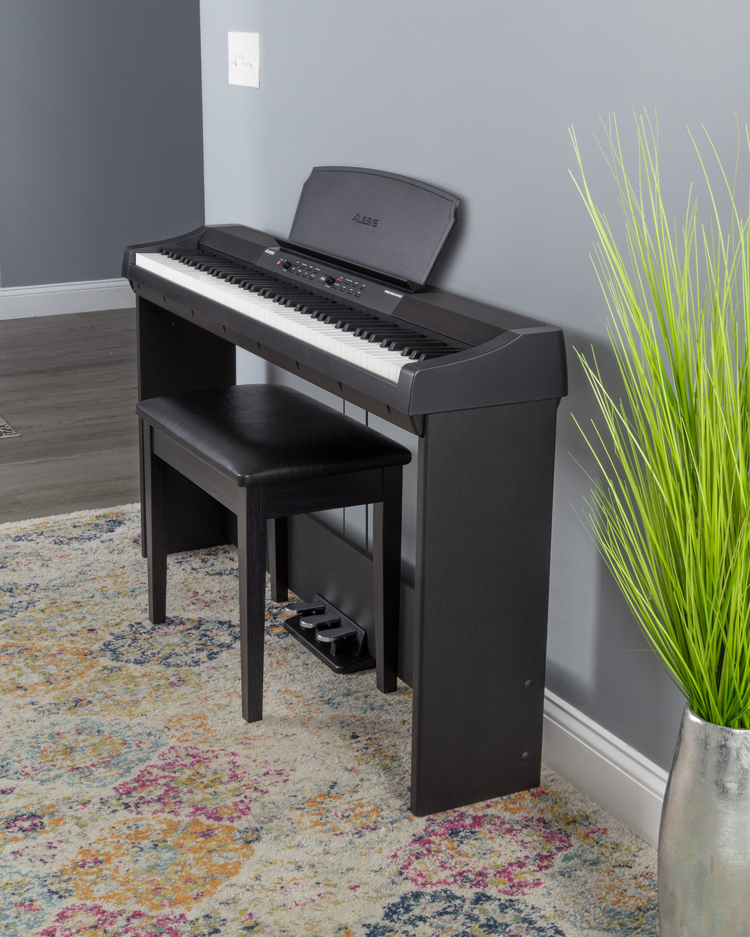 Set příslušenství - kompatibilní s nástroji Alesis Prestige a Prestige Artist, obsahuje: stojan APS-1 Piano Stand, trojpedálovou jednotku (Soft, Sostenuto, Sustain), stoličku APB-1 Piano Bench, barva: černá
