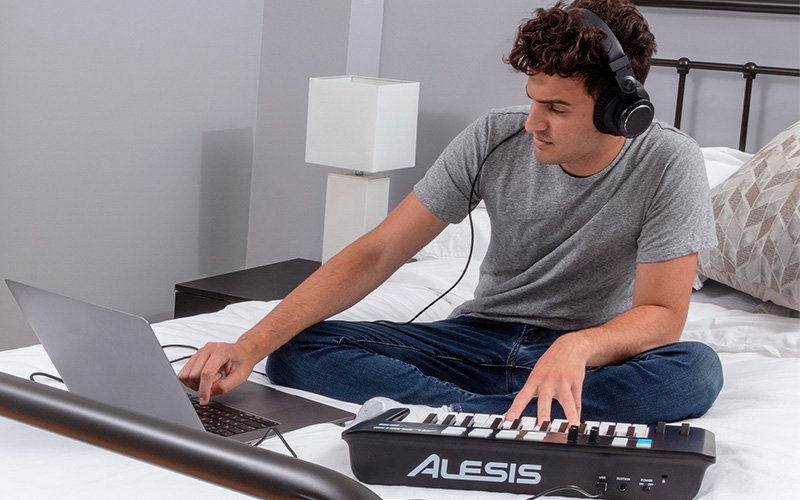 Midi keyboard - 25 rychlostně citlivých kláves, 8 padů s LED podsvícením, 4 přiřaditelné knoby, Pitch Bend a modulační kolečko, vstup pro sustain pedál, barva: černá