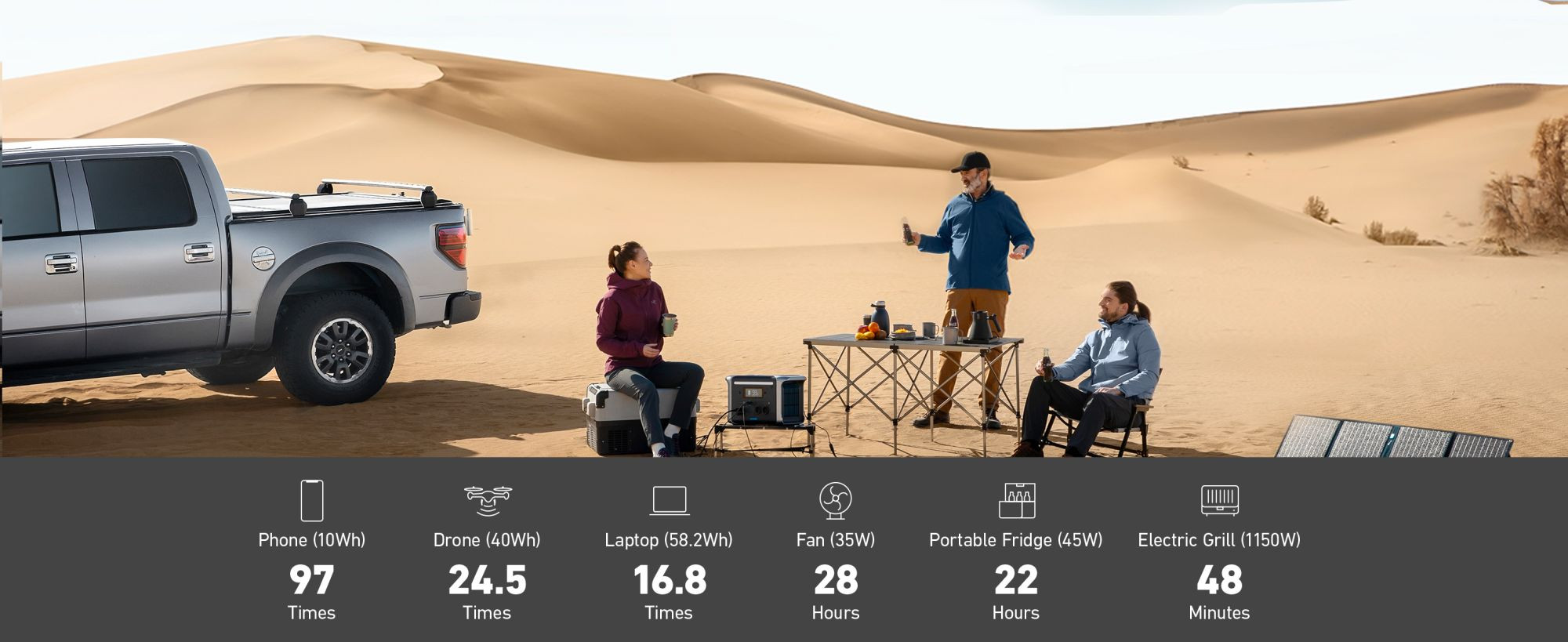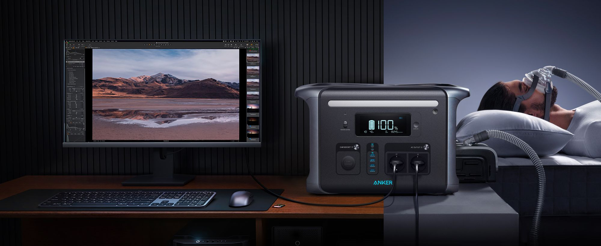 Přenosná napájecí stanice, baterie PowerHouse 1229Wh LiFePo4, 1500W solární generátor se 6 zásuvkami (volitelně solární panel), 2 porty USB-C 100W Max, LED světlo pro kempování