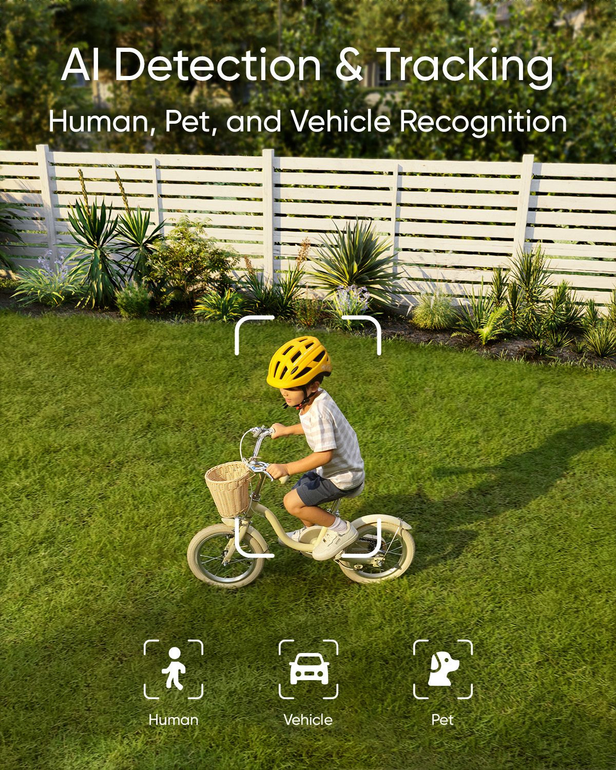 3K duální drátová bezpečnostní kamera, 3K + 2K kamera, vertikálně 120°, s otáčením 360°, zorný úhel 135°, 8× hybridní zoom, Wi-Fi 6 (pracuje v síti 2,4GHz a 5GHz), 2000 lm reflektory, podpora až 128GB micro SD card, travalé napájení 230V, funkční samostatně, nebo ze párovat k HomeBase 3