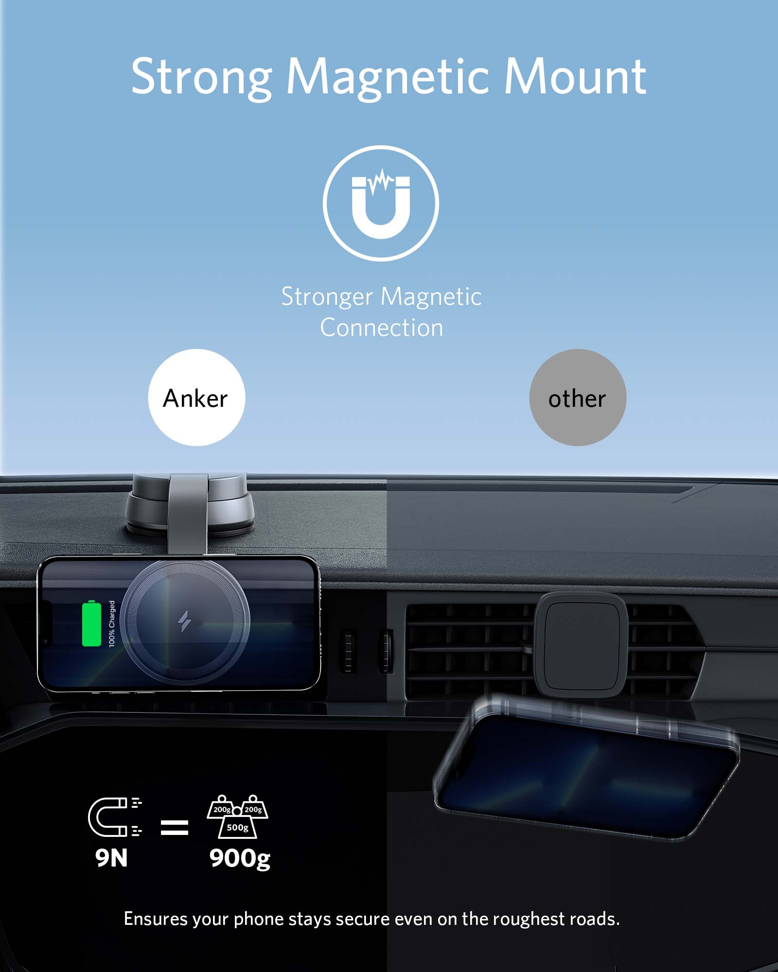 ANKER PowerWave Mag Go Car Charging Mount, Black