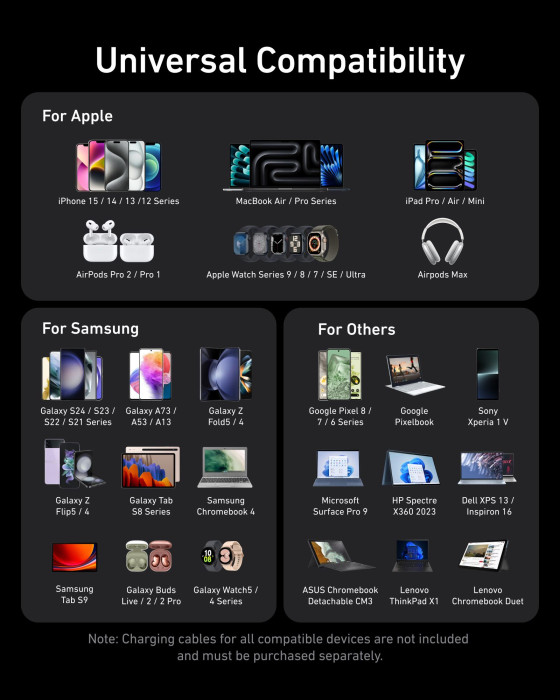 3portová GaN skládací a kompaktní nástěnná nabíječka, 100W, USB C, pro MacBook, iPad, iPhone Series, Galaxy S24/S23 a další