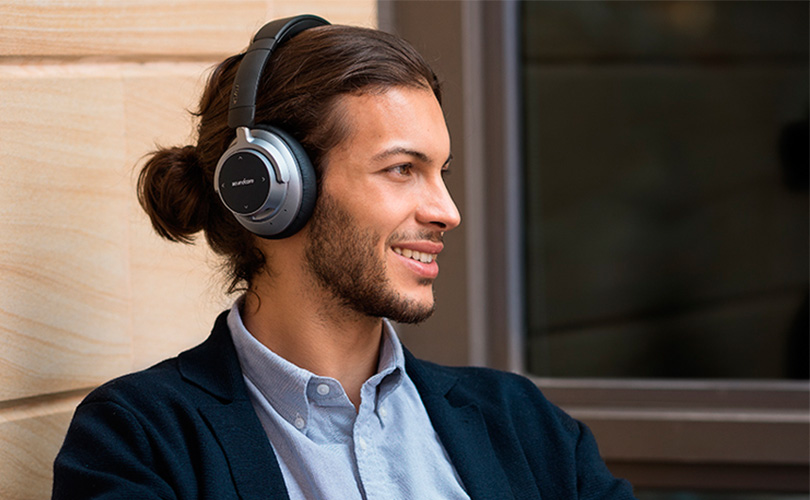 Bezdrátová sluchátka s možností zapojení kabelu, měniče velikosti 40 mm s výraznými basy, funkce Soundshare, 50 hodin poslechu na jedno nabití, podporované kodeky: AAC + SBC, otočné mušle o 90°...