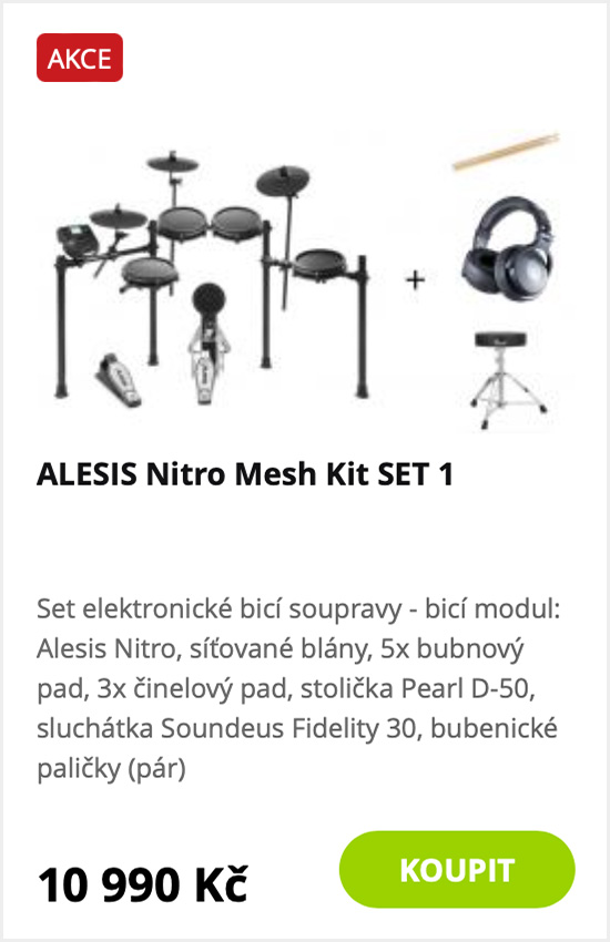Pokud máte doma malého bubeníka, máme pro vás dobrou zprávu! V naší nabídce totiž kromě klasické bicí sady najdete i elektronické bicí, na které se dá celkem v klidu cvičit i doma, mají spoustu moderních funkcí a v balíčku je rovnou dáváme i se sluchátky. Talent vašeho dítěte se tak může přirozeně rozvíjet i bez vašeho tiku v oku.