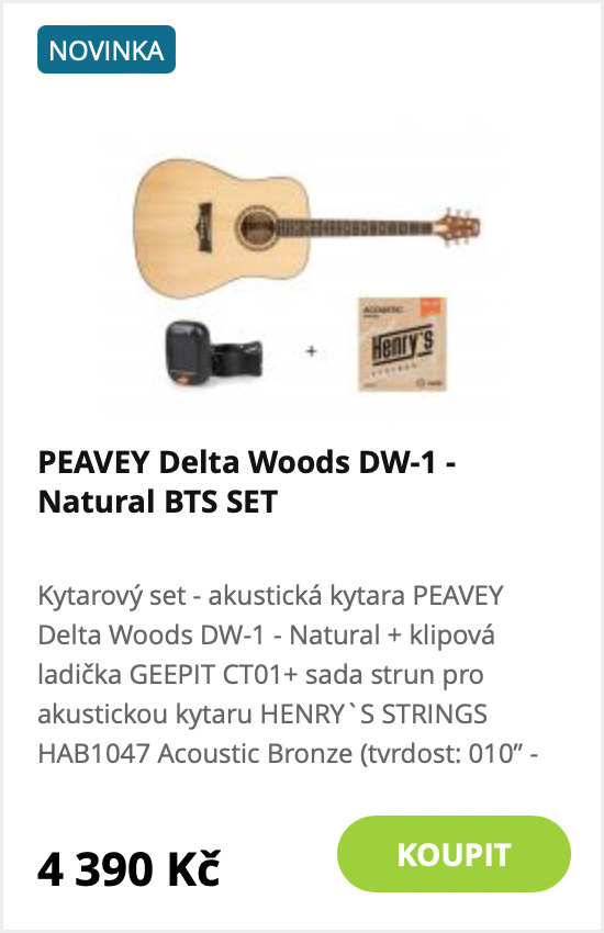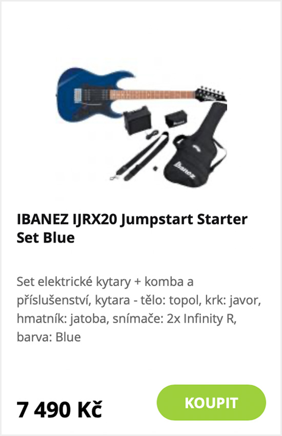 Klasika nebo elektrika? V našich balíčcích najdete obojí. A s osvědčenými značkami Cordoba a Ibanez určitě při výběru nešlápnete vedle. Klasické kytary jsou k dispozici ve standardní nebo ¾ velikosti a v příslušenství rovnou najdete ladičku, podnožku i balení náhradních strun. Malé rockery potěší elektrická kytara Ibanez v balení s kombem a příslušenstvím, která určitě v koutě opřená nezůstane.