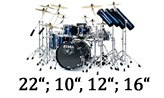 Bicí souprava - průměry: BD 2x 22”, TT 10”, TT 12”, FT 14”, FT 16”, SD 14”, sada hardware Stage Master, sada činelů Meinl HCS (14" HiHat, 16" Crash, 20" Ride), řada: Imperialstar, barva: Blacked...