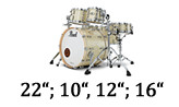 Bicí souprava - průměry: 22”x18” Bass Drums (x 2), 10”x7” & 12”x8” Tom Toms, 14”x12” & 16”x14” Floor Toms, 14”x6.5” Snare Drum, sada hardware, řada: Imperialstar Limited Edition inspired by Lars...