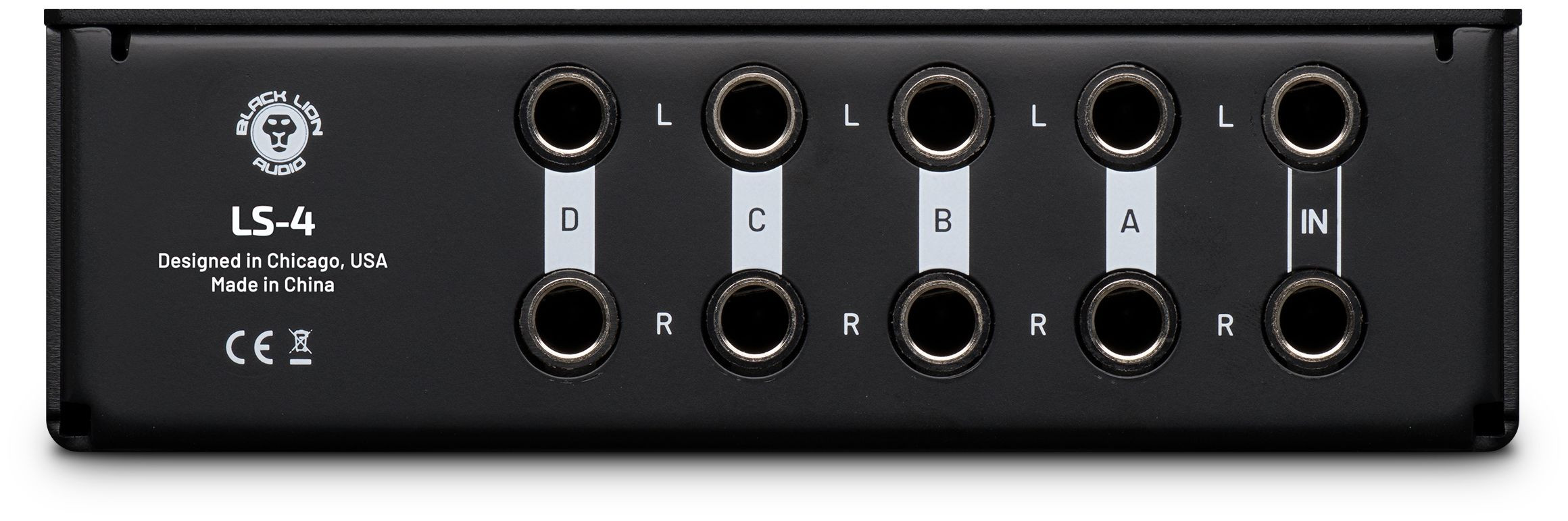 Multifunkční linkový přepínač, 100% pasivní konstrukce, 1x stereo vstup, 4x stereo výstup, kvalitní konektory TS 6,3 mm (velké jacky), nezávislé zemnění každého výstupu