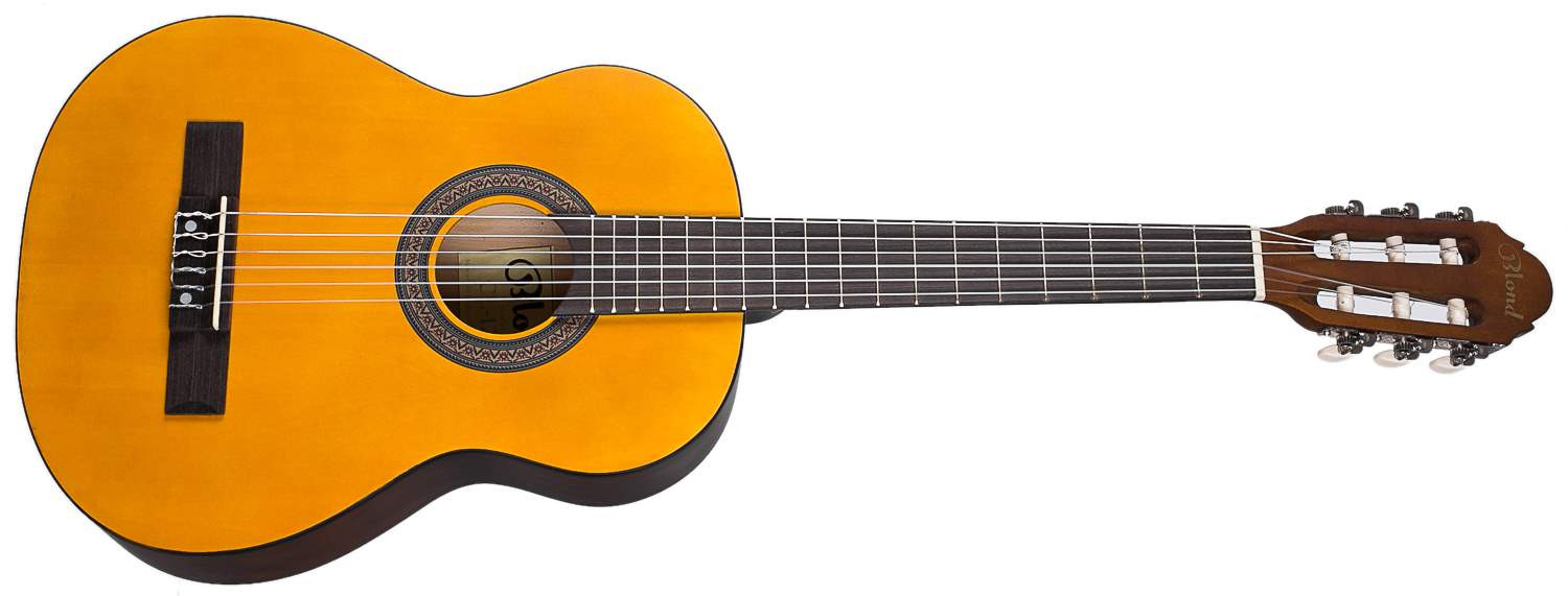 Klasická kytara - dětská, velikost těla: 1/2, top: lípa, zadní deska + luby: lípa, krk: nato, hmatník: ebonizované dřevo, kobylka: javor, barva: Natural