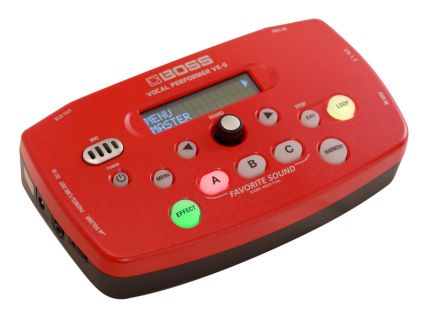 Vokální procesor pro zpěváky, červený. One-touch ovládání. Snadné upevnění, vestavěný mikrofon. Funkce favorite Sound. AUX vstup. Napájení bateriemi.
