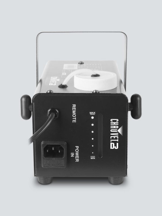 Výrobník mlhy, výstupní výkon: 25 000 CFM, objem nádrže: 2,4 l, spotřeba: 120 ml / min, manuální spínání / dálkové ovládání, dálkový ovladač FC-T, řízení přes DMX, hmotnost: 6 kg