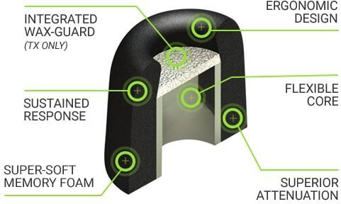 Kvalitní pěnové sluchátkové nástavce s integrovanou ochranou WaxGuard, která zabraňuje nahromadění nečistot ve zvukovodu sluchátek. Vhodné pro sluchátka značky: Klipsch, Westone, Shure, Etymotic...