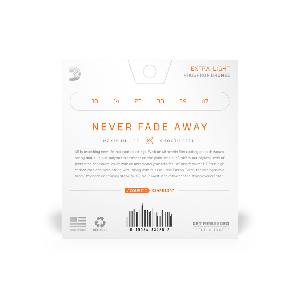 Struny pro akustickou kytaru, řada XS, fosfor-bronz, sada (10-47)