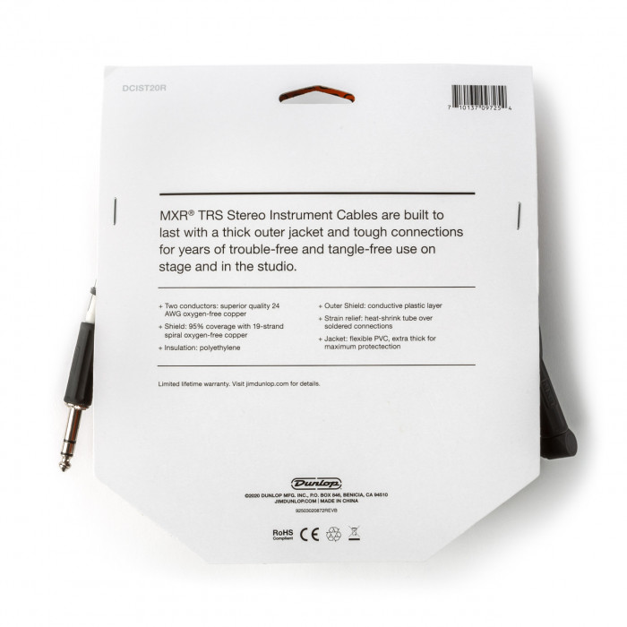 Nástrojový stereo kabel, konektory: Jack 6,3 TRS / Jack 6,3 TRS lomený, délka: 6m