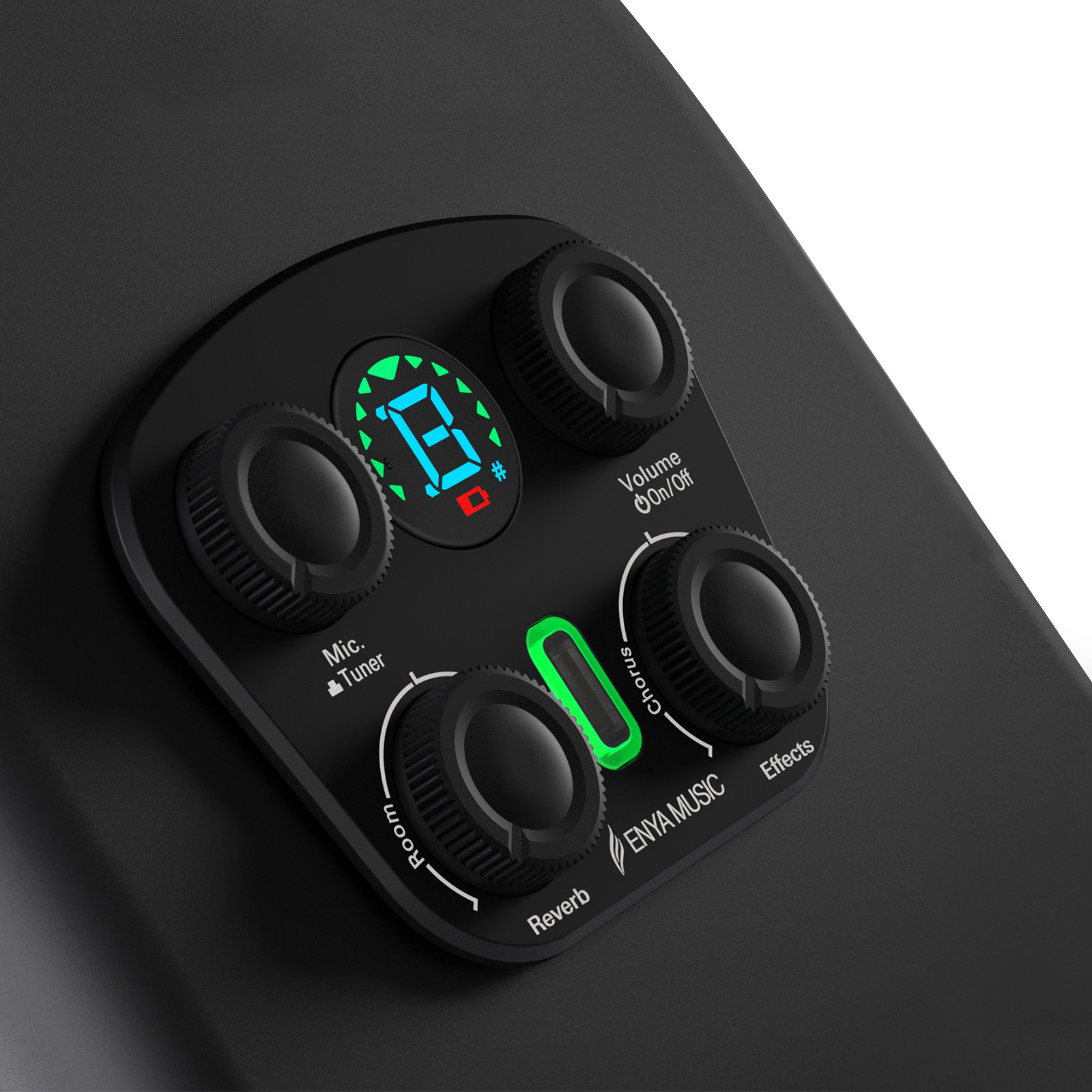 • Ovládání: Volume, Effects (Chorus, Delay), Reverb, Mic/Tuner