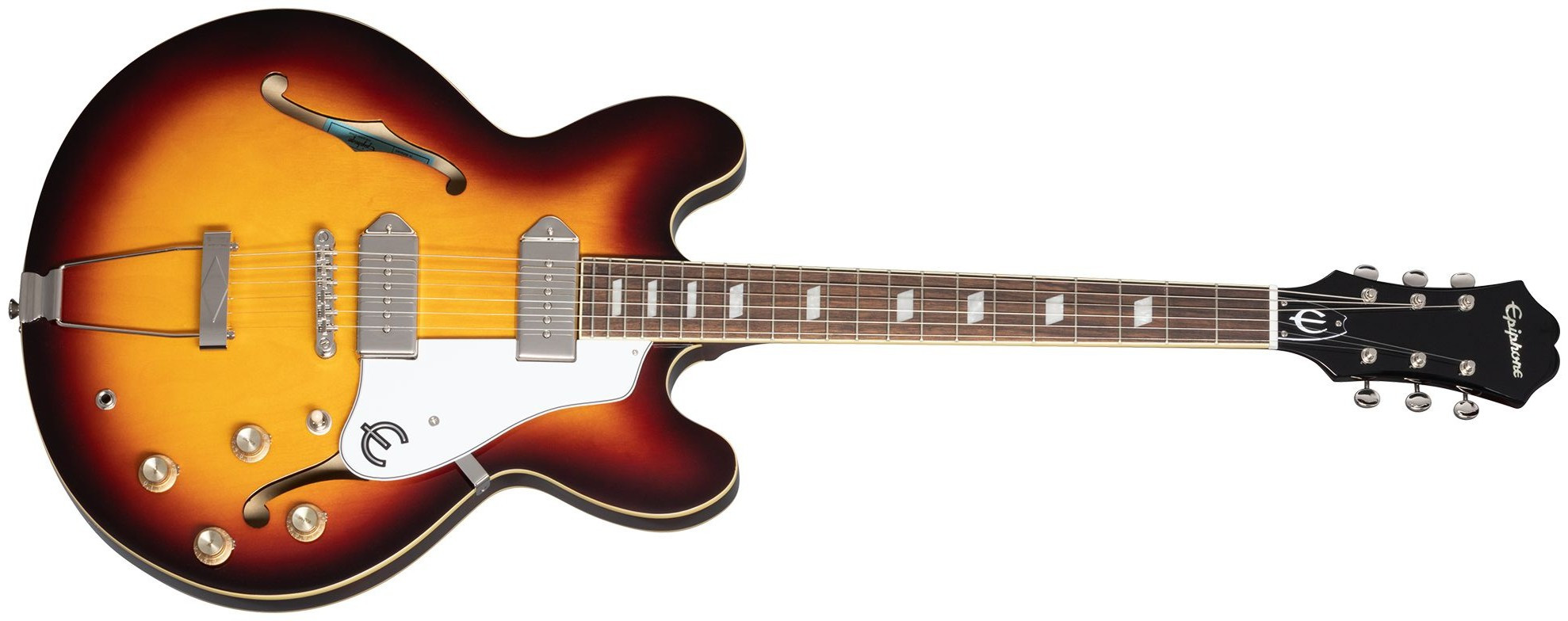 Semiakustická elektrická kytara - top: javor, zadní deska + luby: javor, krk: mahagon, hmatník: laurel, snímače: 2x Epiphone PRO P-90, barva: Vintage Sunburst
