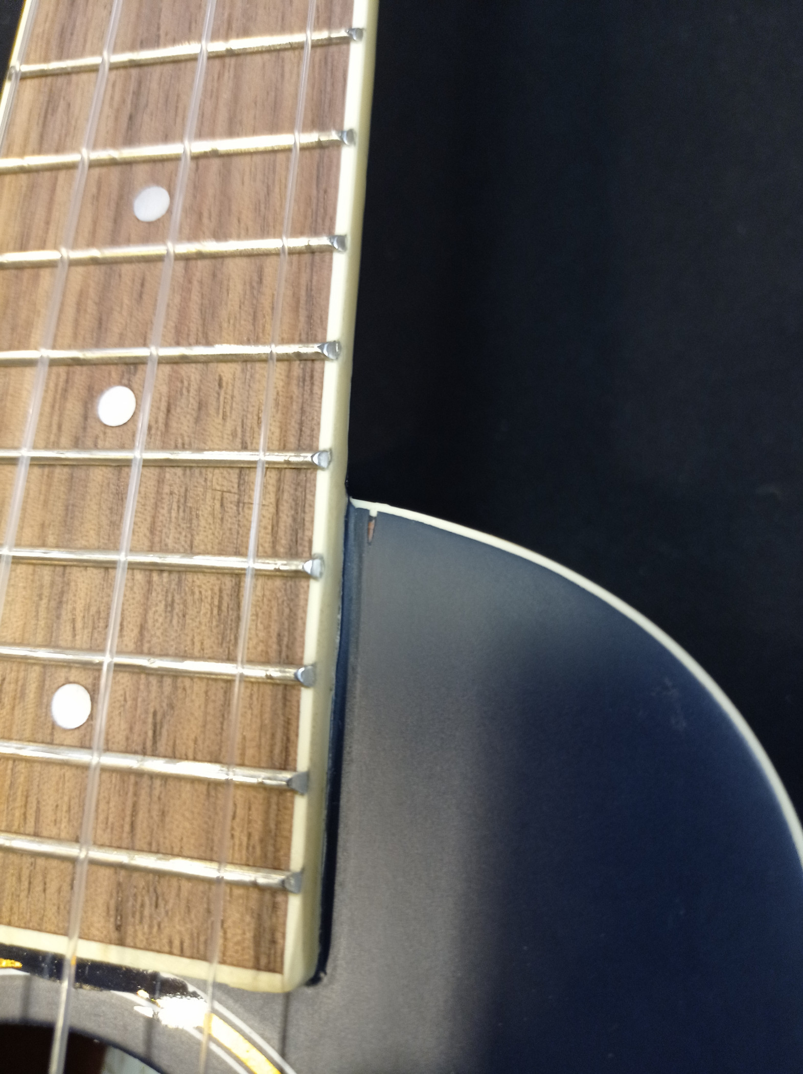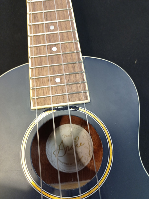 B-STOCK Ukulele Grace VanderWaal Signaturetělo: sapele, krk: nato, hmatník: ořech, barva: Navy Blue, popis poškození: na nástroji jsou zabroušené hranky pražců, při opravě došlo ke stržení části...