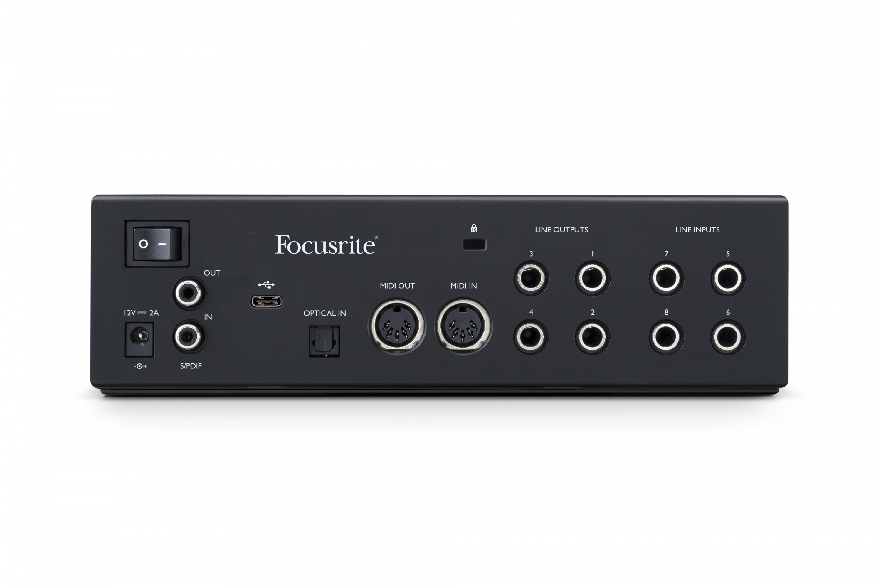 USB zvuková karta - 18-in, 8-out, 4 kombinované mikrofonní / nástrojové JFET vstupy + 4 linkové TRS vstupy na zadním panelu, ADAT, dynamický rozsah: 124 dB, signál/šum: -129 dBu, 2x sluchátkový výstup, MIDI In/Out, S/PDIF In/Out, USB-C