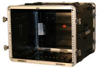 Lehký rackový box - 8U, pro zařízení s hloubkou do 19", materiál: polyetylen, uzamykatelná víka, masivní butterfly zámky, racky je možno skládat na sebe, boční madla, barva: černá
