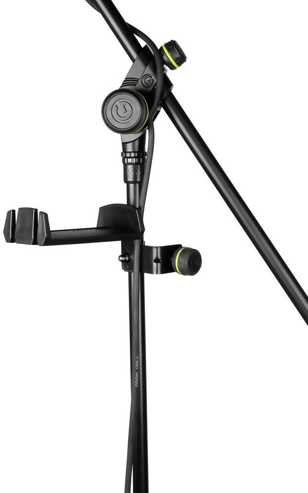 Držák sluchátek s připevněním na mikrofonní stojan, pro 1-2 sluchátka, materiál: ocel, plast, montážní průměr (trubky): max. do 30 mm, barva: černá