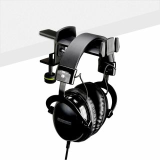Stolní držák na sluchátka, materiál: plast, hliník, šířka podpěry: 60 mm, rozměry základny: 128 x 105 mm