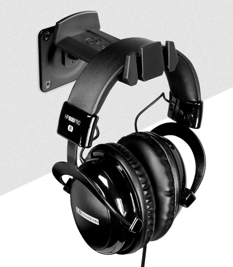 Držák sluchátek s připevněním na stěnu, pro 1-2 sluchátka, barva: černá