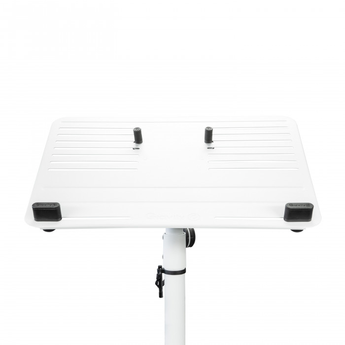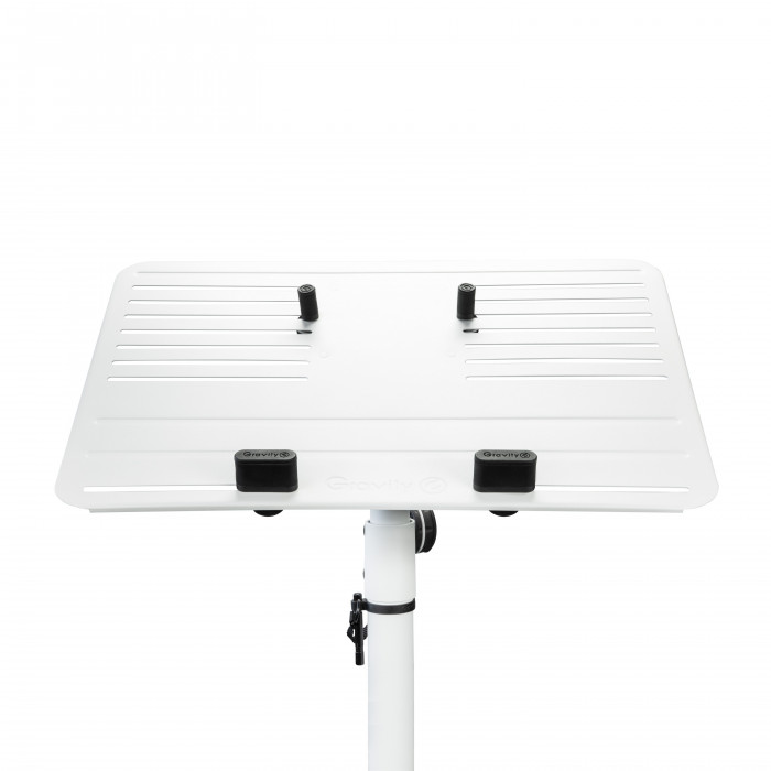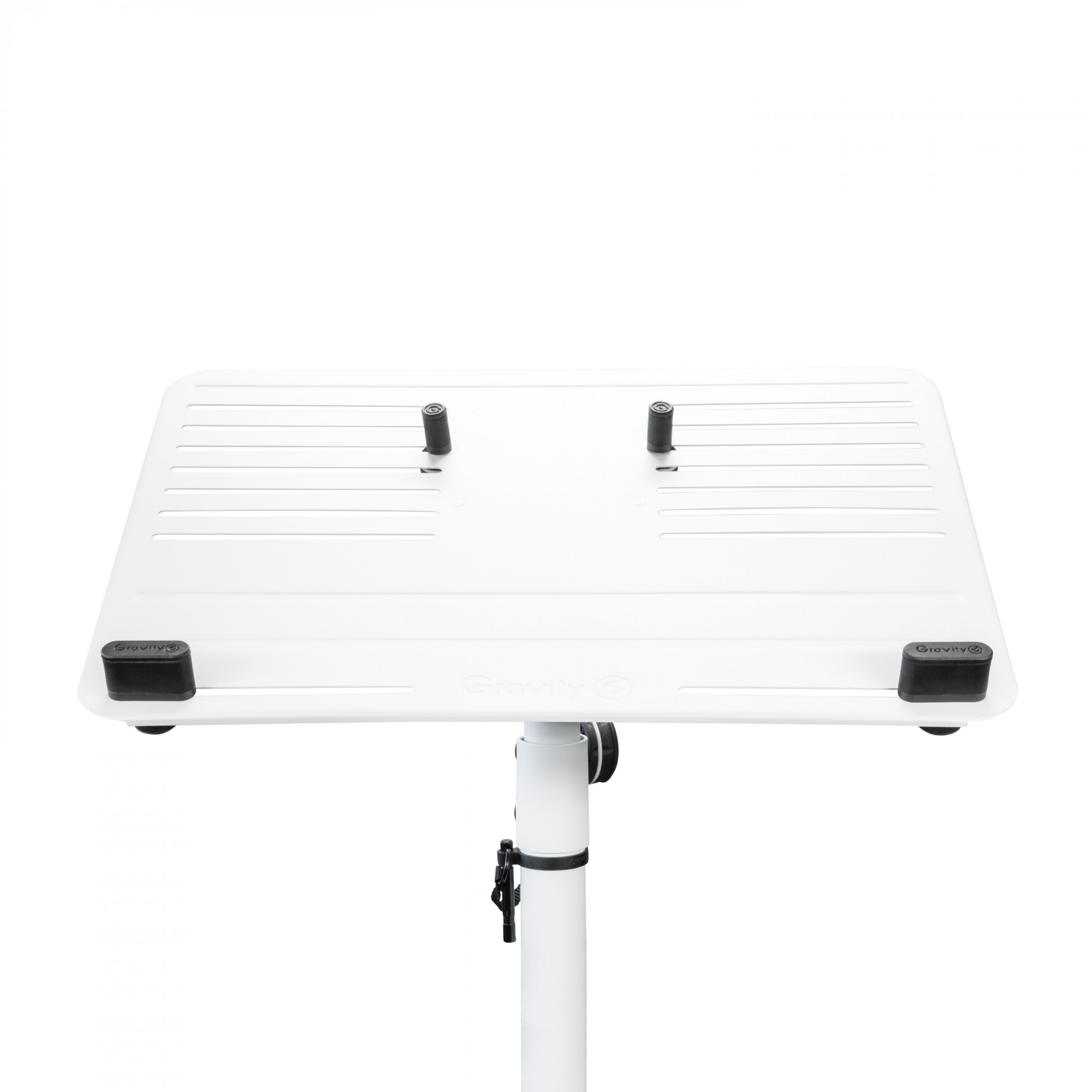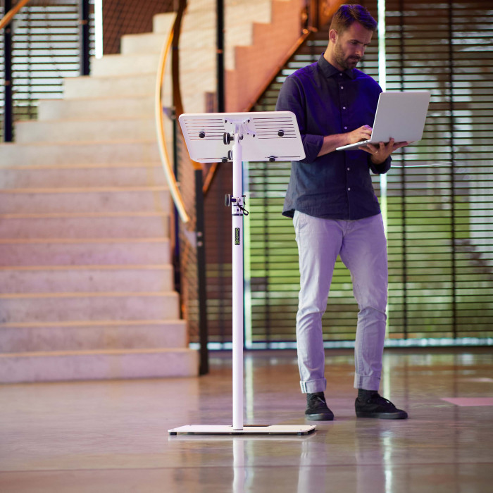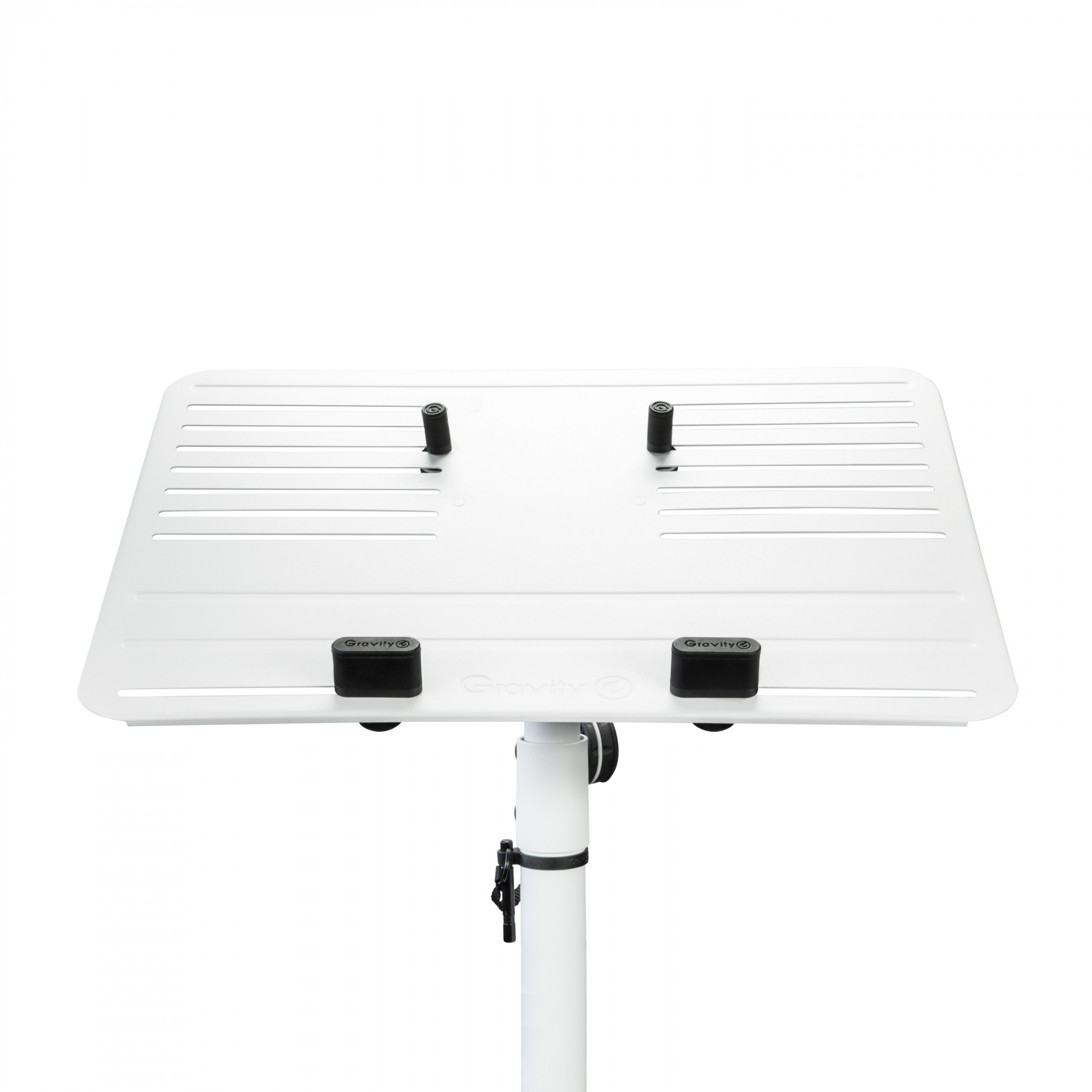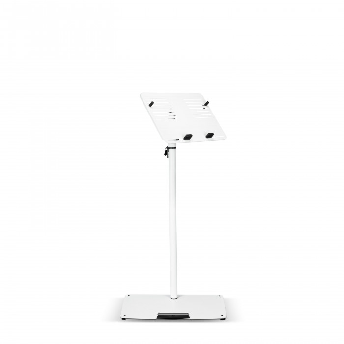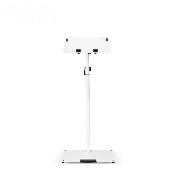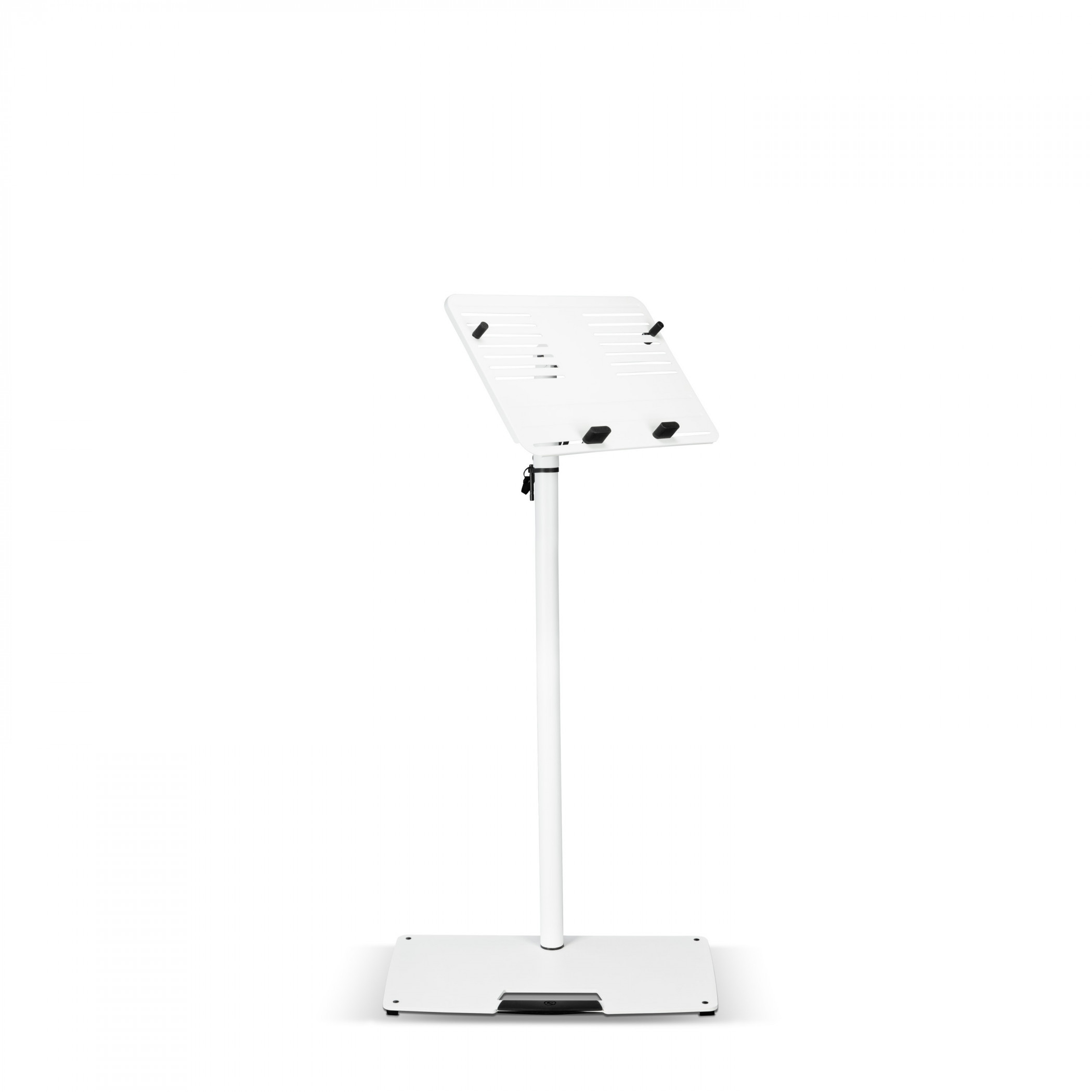 Univerzální stojan na notebook s nastavitelnými přidržnými kolíky a ocelovou základnou, materiál: ocel, nosnost: 15 kg, barva: bílá