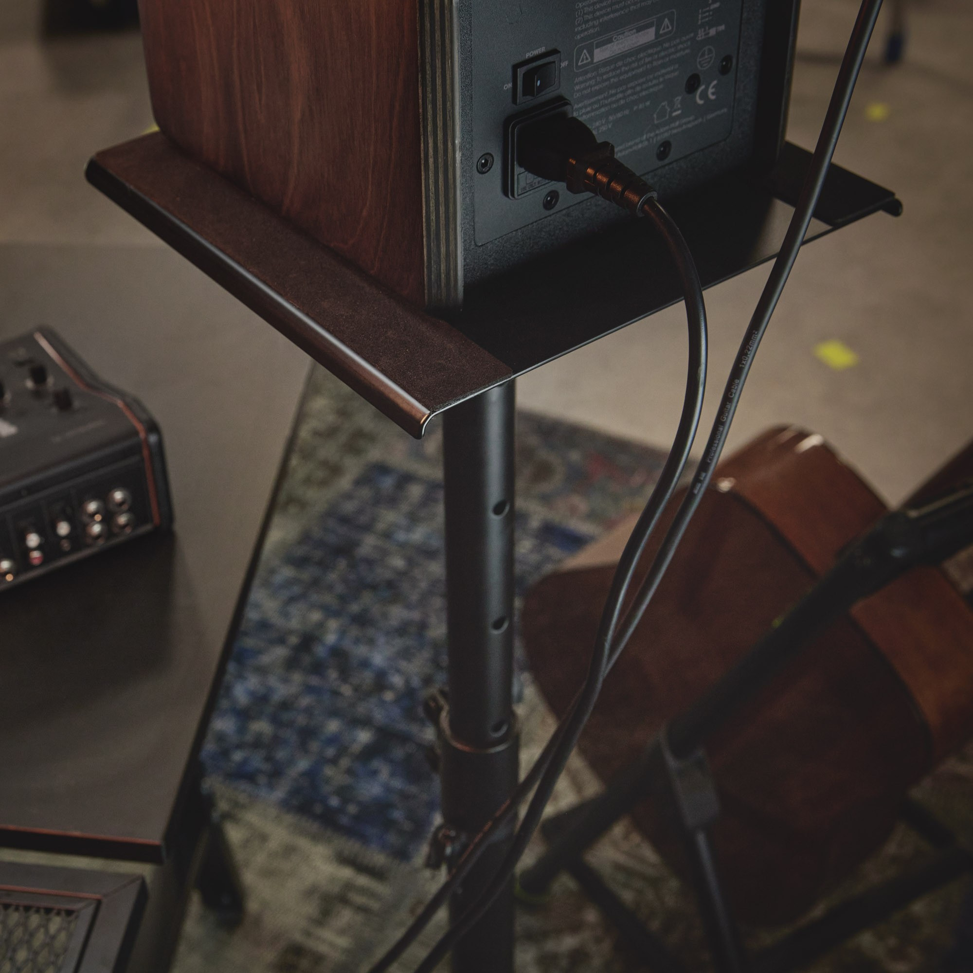 Stojan pro studiové monitory s možností náklonu až 10 °, pevná litinová základna, ocelový plech s izolačními pěnovými proužky, materiál: ocel, minimální výška: 900 mm, maximální výška: 1500 mm,...