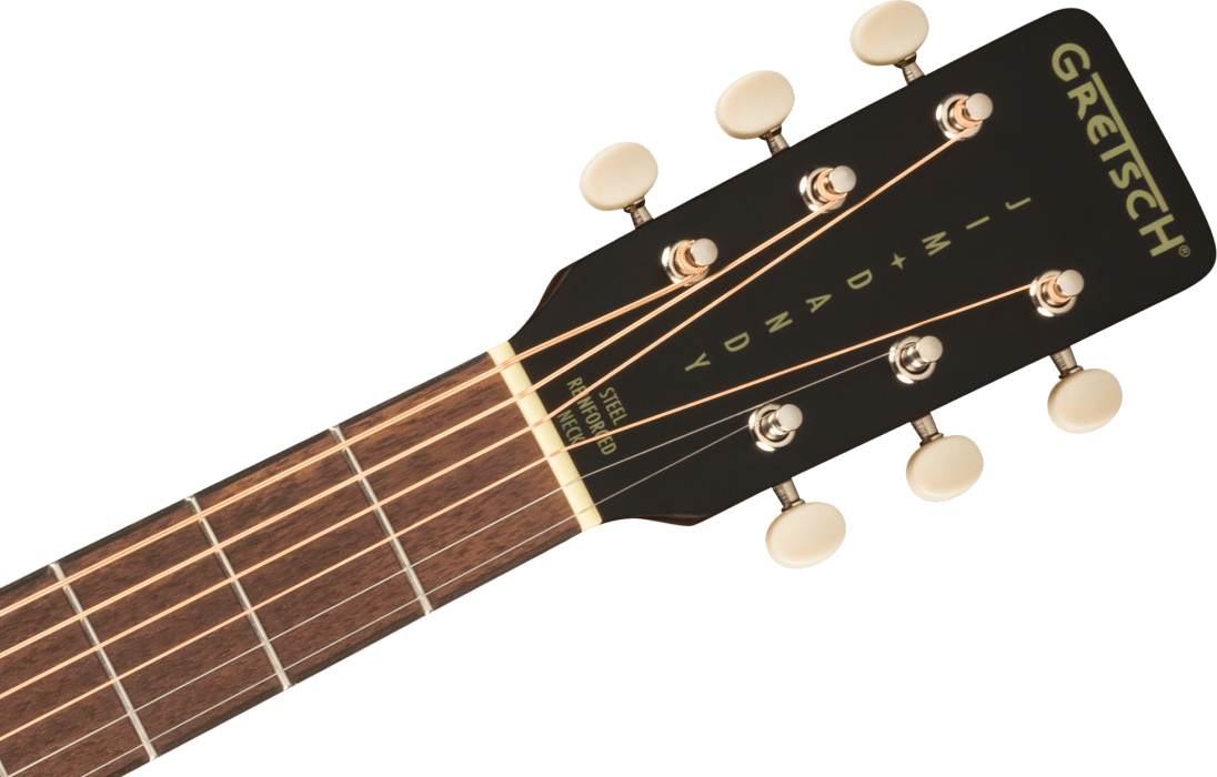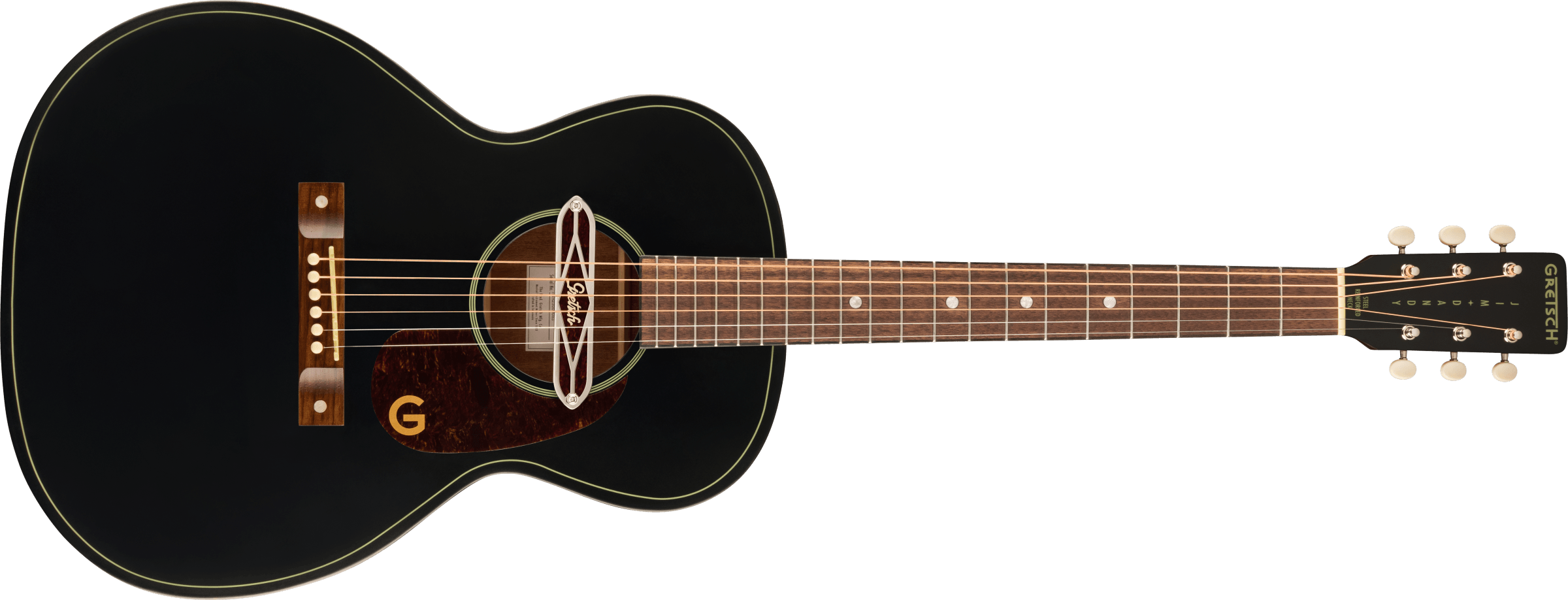 Elektroakustická kytara - tvar těla: concert, top: sapele, zadní deska + luby: sapele, krk: nato, hmatník: ořech, snímač: Gretsch Deltoluxe Soundhole Pickup, barva: Black Top