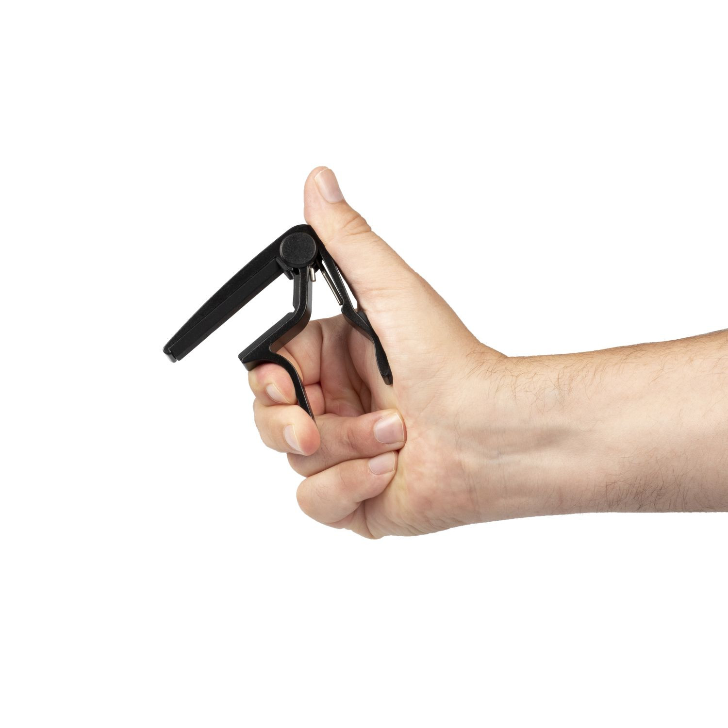 Kapodastr pro klasické kytary, systém „Trigger“ (spoušť) pro rychlé a přesné usazení kapodastru na nástroj, barva: černá