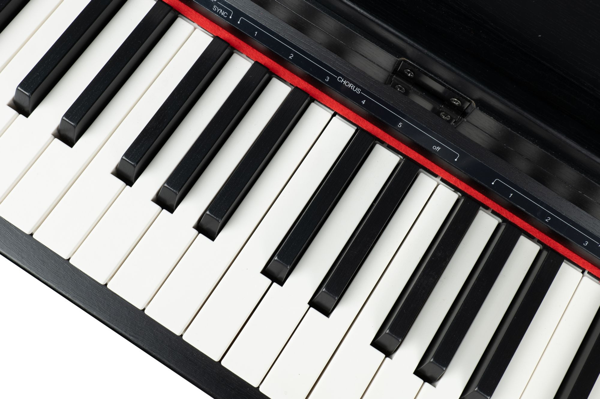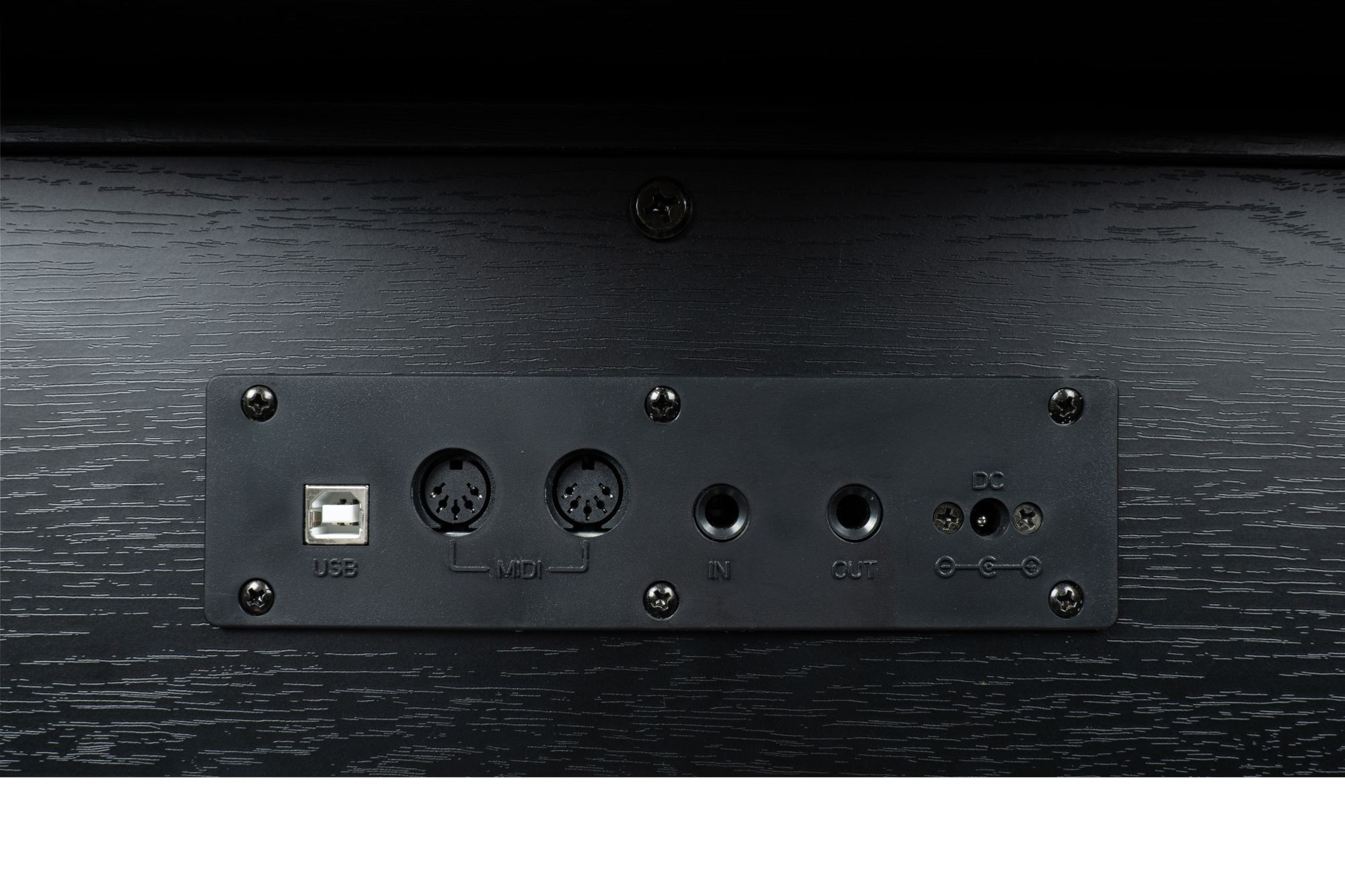 Digitální piano menších rozměrů pro děti, juniory a hudební začátečníky - 88 kláves (Dual/Split Mode), 872 zvuků, 200 rytmů, 80 demo skladeb, MIDI In/Out, Audio In/Out, USB 2.0 (mp3), sluchátkový výstup, integrovaný ozvučovací systém: 2x 6 W, barva: Black