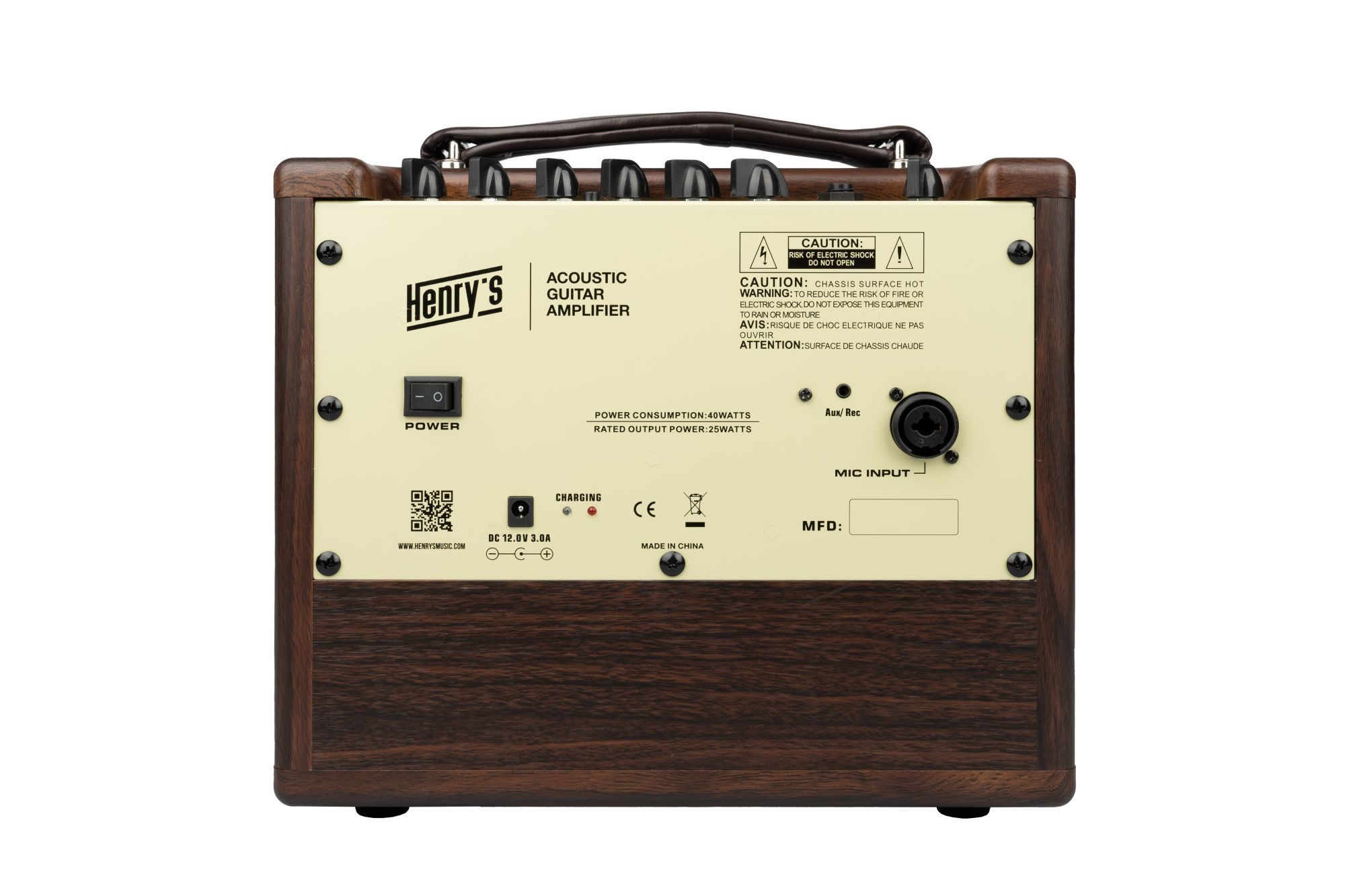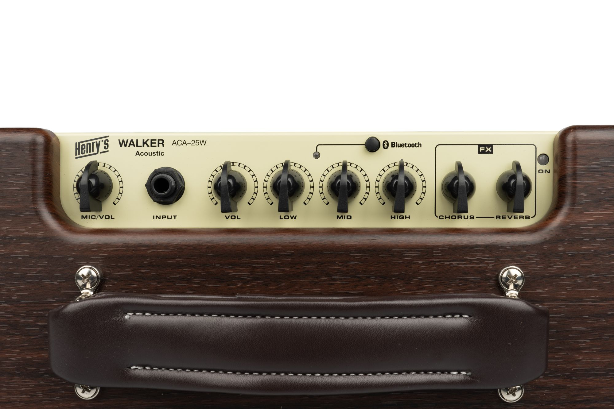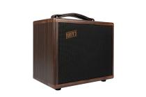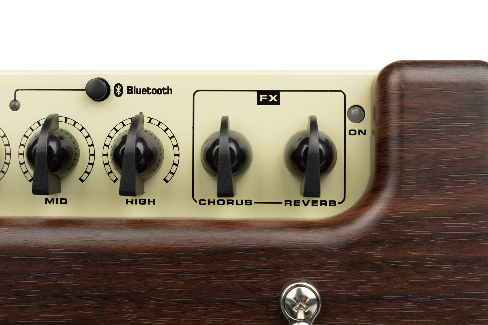 Kombo pro akustickou kytaru - výkon: 25 W, reproduktor: 6,5”, 2 kanály (kytara/mikrofon), 3-pásmový EQ, modulační efekty (chorus/reverb), aux vstup, Bluetooth, napájení: lithiová baterie (výdrž 5 hodin) nebo síťový adaptér DC 12 V, nohy pro naklopení komba