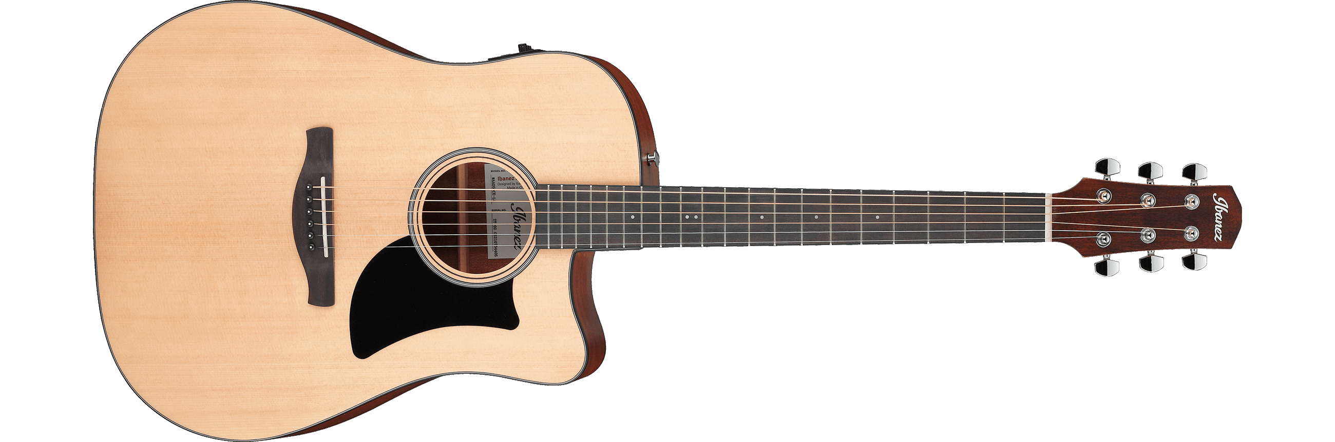 Elektroakustická kytara - tvar: Grand Dreadnought, cutaway, top: smrk sitka (masiv), zadní deska + luby: sapele, krk: okoume, hmatník: purpleheart, elektronika: Ibanez AEQ-TP2, barva: Natural Low Gloss