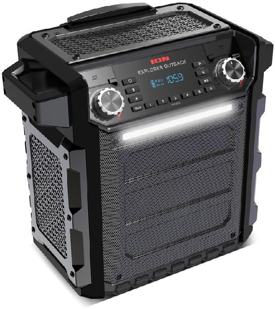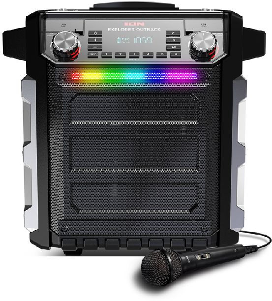 100 Watt Bluetooth speaker se zabudovanou baterií, výdrž až 75hodin, IPX4 voděodolný, AM/FM rádio, světelný pruh, teleskopický úchyt + kolečka, barva: černá