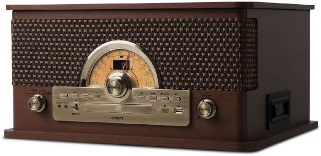 Multifunkční gramofon se zabudovanými reproduktory, přehrává 7 formátů (7”, 10” and 12” Records / Cassette tapes / AM/FM Radio / CD ( MP3/CD-R/CD-RW) / Bluetooth / USB vstup / Aux input