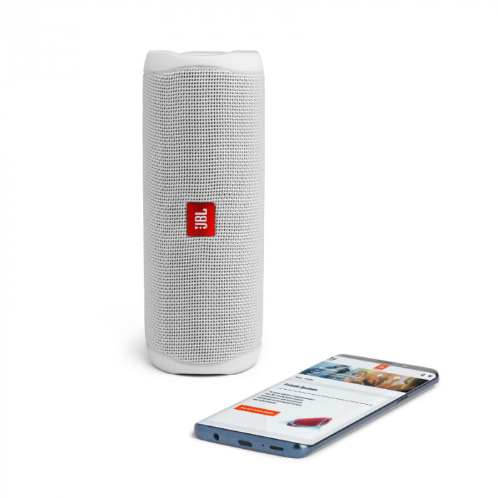 Bezdrátový reproduktor s bluetooth v4.2, odolnost proti vodě IPX7, výkon: 20W, dobíjecí baterie 4800 mAh, s výdrží až 12 hodin, napájení přes USB-C, barva: bílá