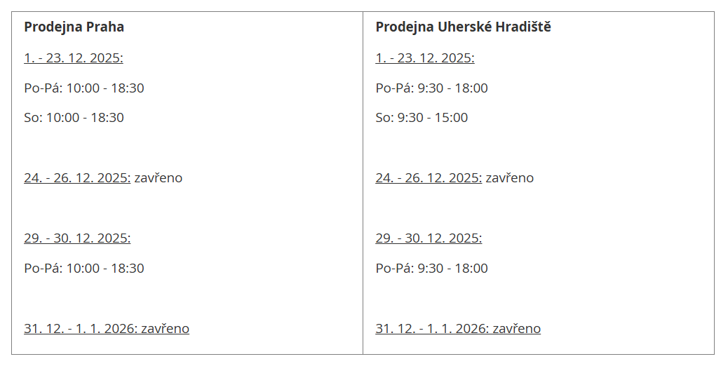 OTEVÍRÁME SOBOTY! Naše prodejny budou až do Vánoc otevřené i v sobotu. Více info ZDE.