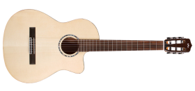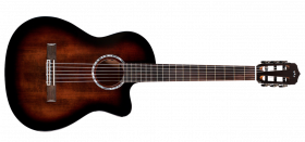 Klasická kytara se snímačem - top: smrk sitka (masiv), zadní deska + luby: mahagon, krk: mahagon, hmatník: pau ferro, elektronika: Fishman Presys II, barva: Sunburst